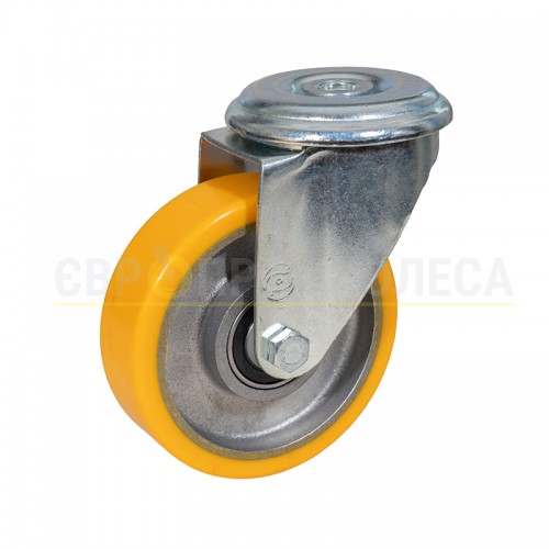 У колесах серії 50 контактний шар з високоякісного поліуретану (еластомеру), що не залишає слідів на місці контакту з поверхнею. Основа колеса відлита під тиском зі сплаву алюмінію. Колеса даної серії відрізняються найкращими вантажопідйомними характеристиками: висока вантажопідйомність при малому діаметрі (економить кошти), не має залишкової деформації під час тривалого простою в навантаженому стані; не викликає шуму при перевезенні вантажу; Характеризується високим опором прослизанню., наявність подвійного кулькового підшипника на вісі колеса спрощує рух. Застосовуються на важкому промисловому обладнанні, в машинобудуванні і при транспортуванні склопакетів на виробництві до 2 000 кг. Кронштейн типу "Standard", для не інтенсівних регулярних нагрузок, підданий оцинкуваню, що забезпечує тривалість терміну експлуатації.